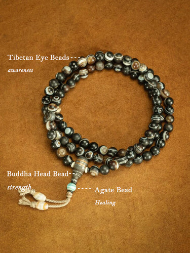 Himalayan Eye of the Buddha 108 Beads Mala Necklace for Spiritual Healing