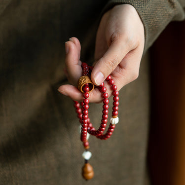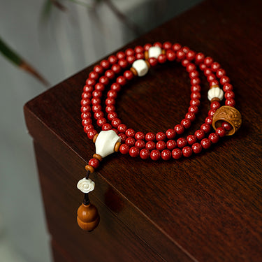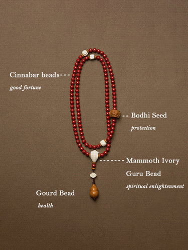 Imperial Cinnabar 108 Mala – Wrap Bracelet & Necklace with Mammoth Ivory Guru Bead