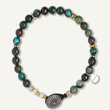 The "Malachite Prosperity Wheel Bracelet" combines the vibrant energy of malachite with the symbolic power of the thousand-spoked wheel, beautifully crafted in sterling silver. Known as the stone of transformation, malachite invites wealth and protection, helping to clear obstacles on your path to success. The intricate silver wheel symbolizes the endless cycle of opportunity, growth, and good fortune, empowering the wearer to move confidently through life’s transitions.