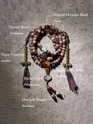 Natural Camel Bone 108 Mala Necklace – Handcrafted Design with Spiritual Protection