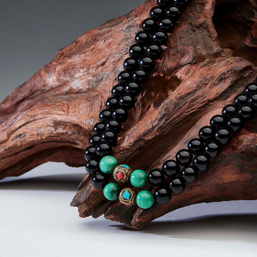 Protection Energy Obsidian and Turquoise Mala 108 Mala Beads