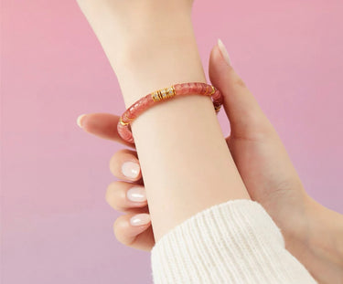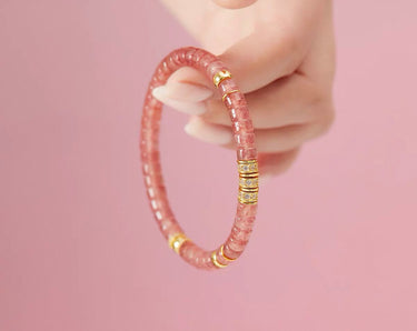 Power of Emotional Balance & Energy Protection Bracelet | Strawberry Quartz & Silver-Plated Gold