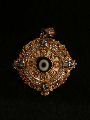 Material: Dzi Bead, Gold & Silver Alloy