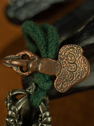 Handcraft: Hand-cast, engraved detailing, natural patina finish