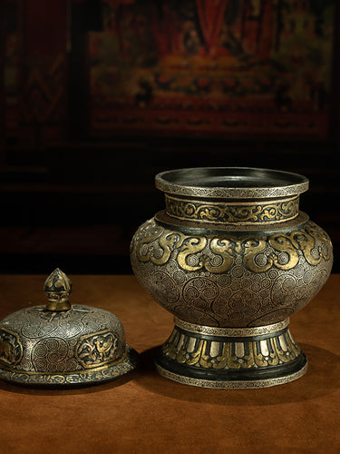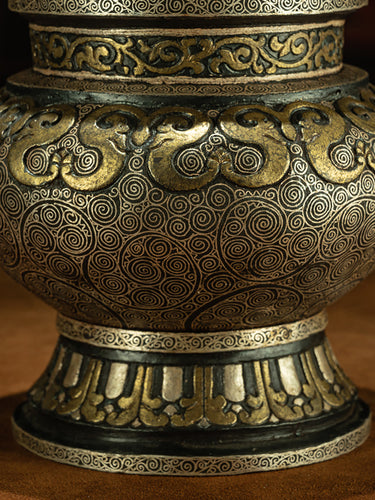 Qing Dynasty Style Tibetan Gilt Silver Inlayed Treasure Vase