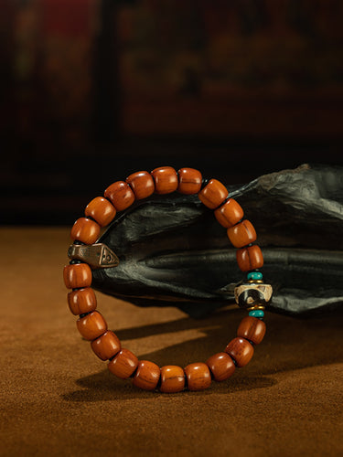Qing Dynasty Style Tibetan High-Density Handcrafted Yak Bone Barrel Beads Bracelet