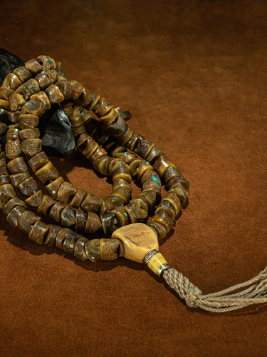 This Qing Dynasty Tibetan King Of Beads108-Bead Prayer Bracelet is exceptionally rare. The beads are inlaid with turquoise, reflecting powerful spiritual protection and blessings. The original deep-shrink three-way connector is intact, with full, well-proportioned beads and a solid tactile feel.