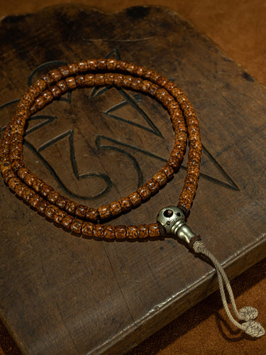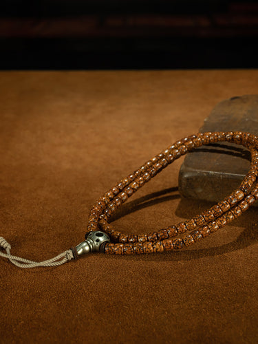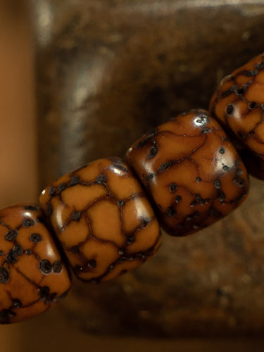 This Qing Dynasty Tibetan Jadeized Star & Moon Bodhi 108-Bead Prayer Bracelet is a finely crafted set of small beads with high density, clear jadeization, and natural fissures, forming patterns reminiscent of a starry sky. With 108 beads, the bracelet offers a smooth tactile experience, promoting mindfulness, inner calm, and spiritual protection.