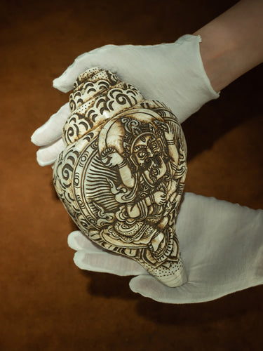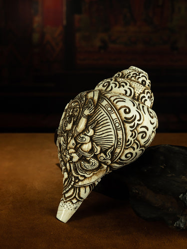 Qing Dynasty Style Tibetan Large Double-Body Red God of Wealth White Conch Amulet