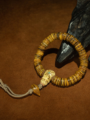 Qing Dynasty Style Tibetan Thin-Sliced Jadeized 108-Bead Prayer Bracelet