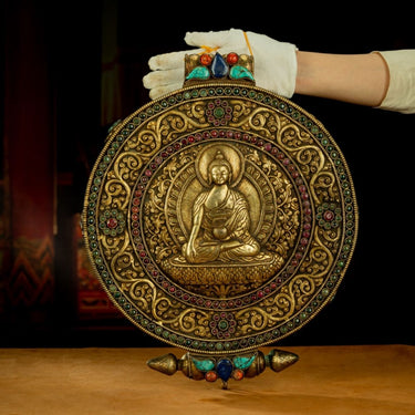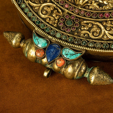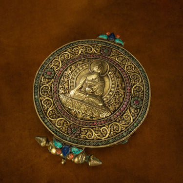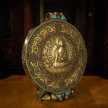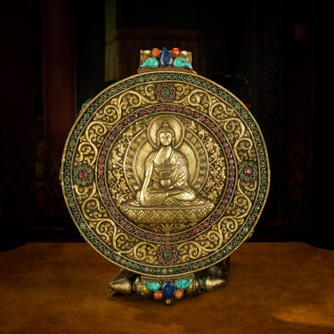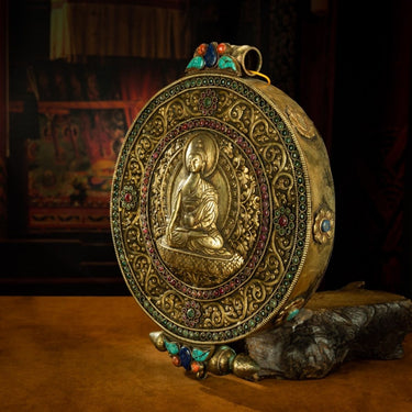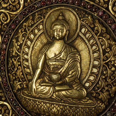 Qing Dynasty Tibetan Antique Gau Box Shakyamuni Buddha Repoussé and Gilt Gyirong Lakang Monastery