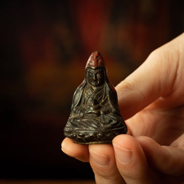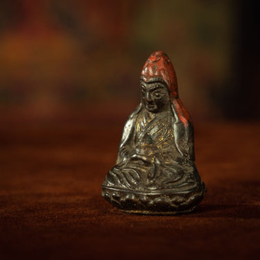 Qing Dynasty Tibetan Antique Statue Padmasambhava Round Sculpture Lima Copper Dzogchen Monastery