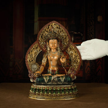 Qing Dynasty Tibetan Antique Statue Sitatapatra Original Mineral Paint Chamdo Qiangbalin Monastery