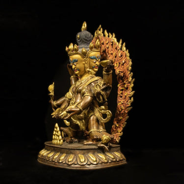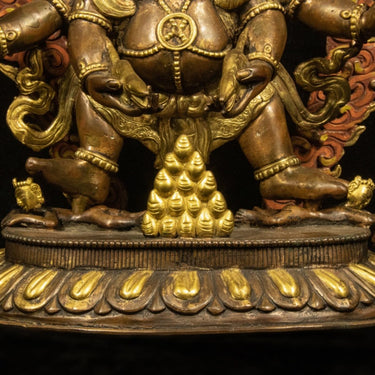 Qing Dynasty Tibetan Antique Statue Three-Faced Six-Armed Mahakala Gilded Dza Monastery