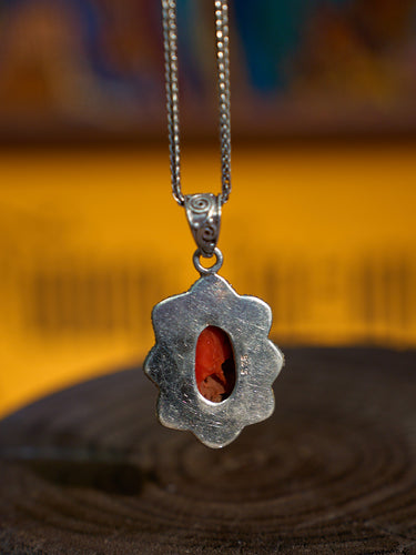 Sacred Love Pendant with Red Coral and Turquoise – A Himalayan Symbol of Devotion and Harmony