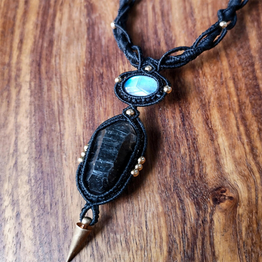 Material: Obsidian, Moonstone, Wax Rope, Copper