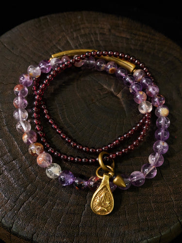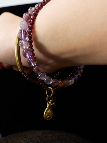 Spiritual Harmony Amethyst Ghost and Garnet Bracelet with Copper