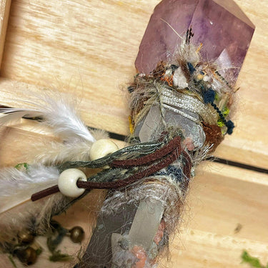 "Spring God Torch" scepter Tibetan White Quartz Crystal Amethyst Moonstone Handmade