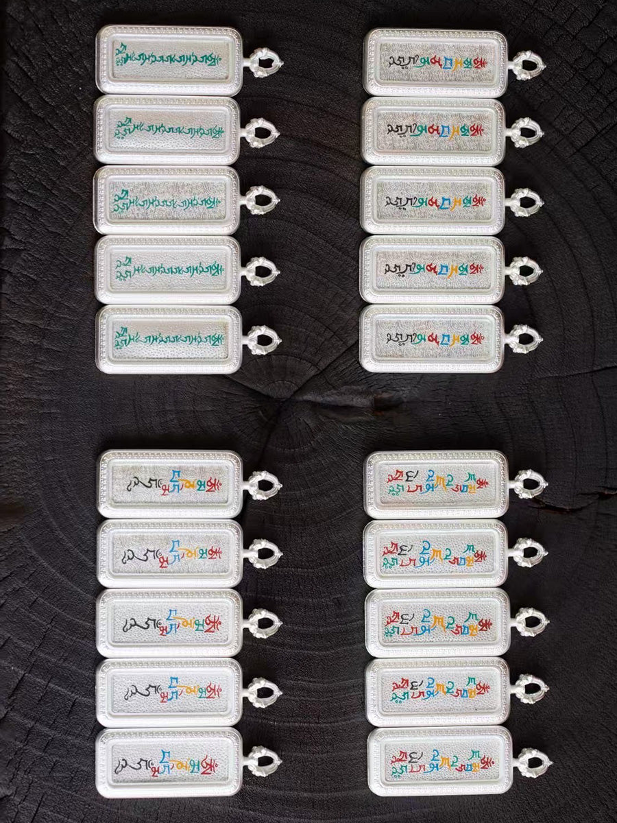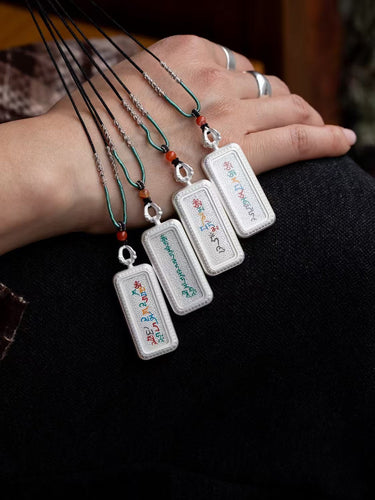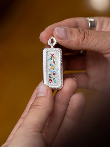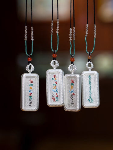 Tibetan Silver Thangka Mantra Pendant