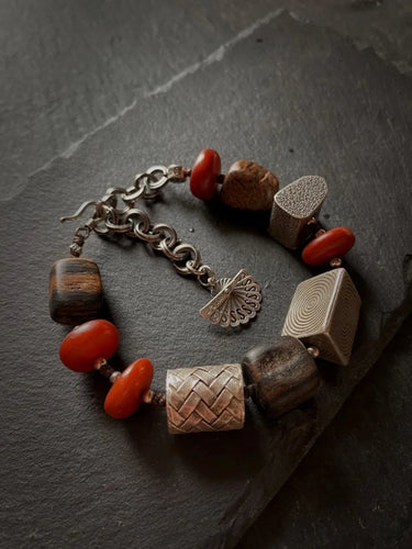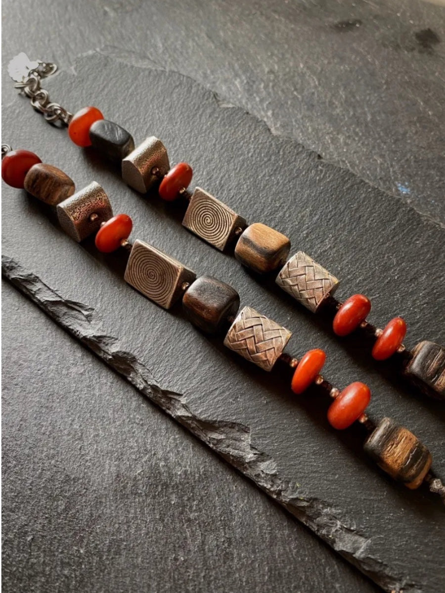 Amber and Agarwood Sterling Silver Bracelet – A Himalayan Talisman of Wealth and Inner Strength