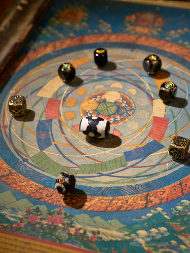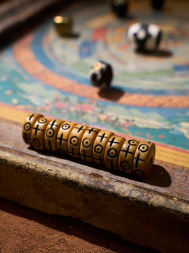 Material: Mandala Three-Eyed Dzi Bead, Sun, Moon, and Stars Agate Beads (Four Beads), Zashi Lhamo Tibetan Copper Bead, Six-Syllable Mantra Sterling Silver Bead, Tibetan Yak Bone Bead, Stering Silver, Agate