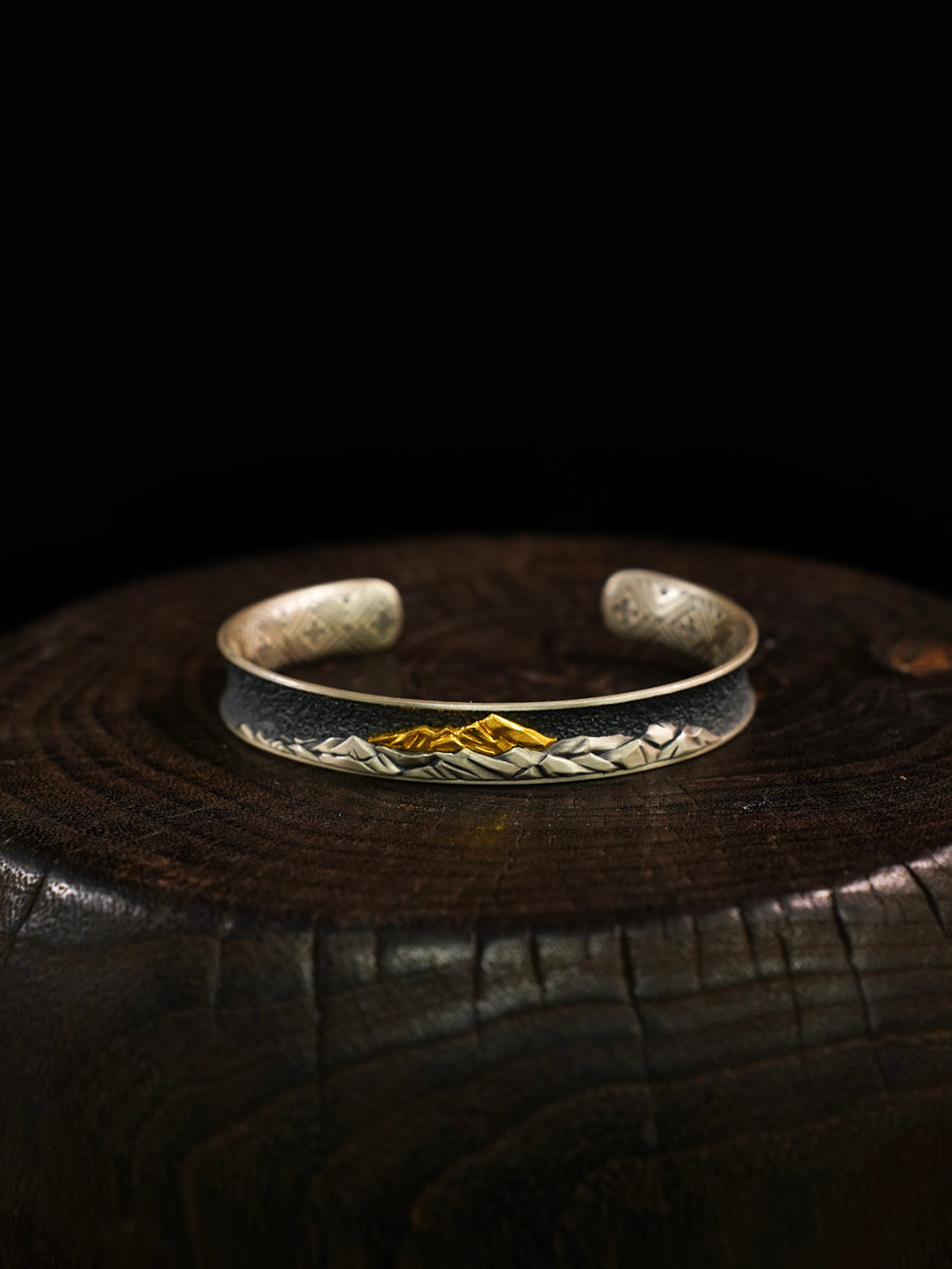 KAILASH Mountain Sacred Summit Gold and Silver Pure Silver Bracelet