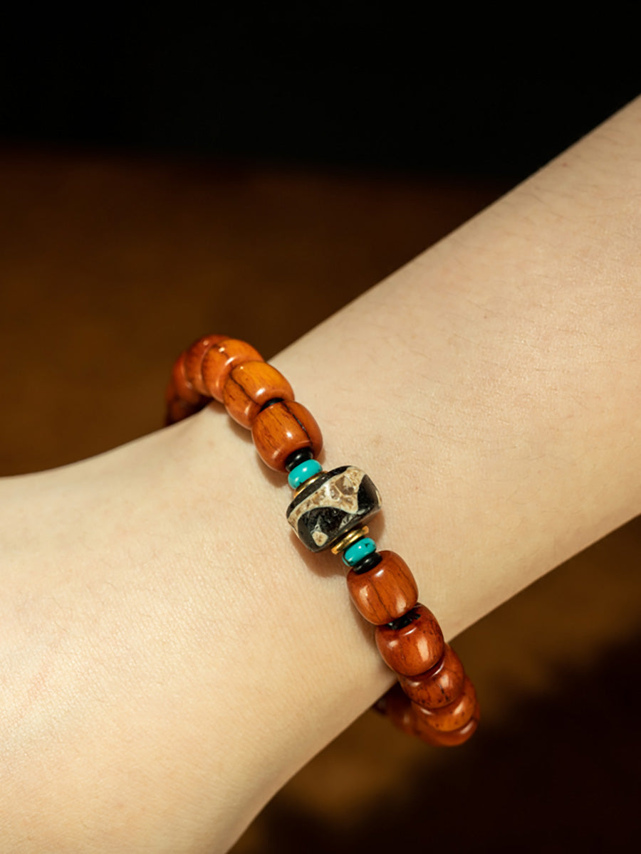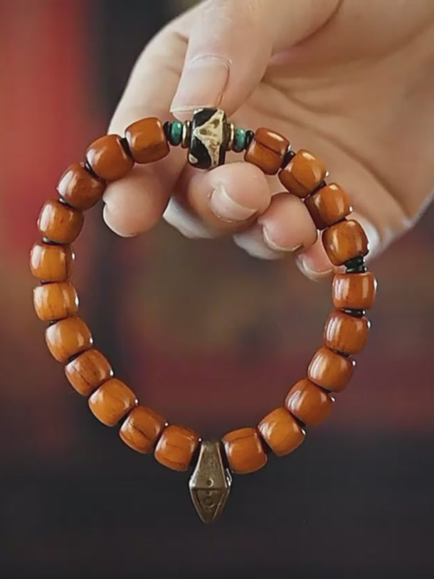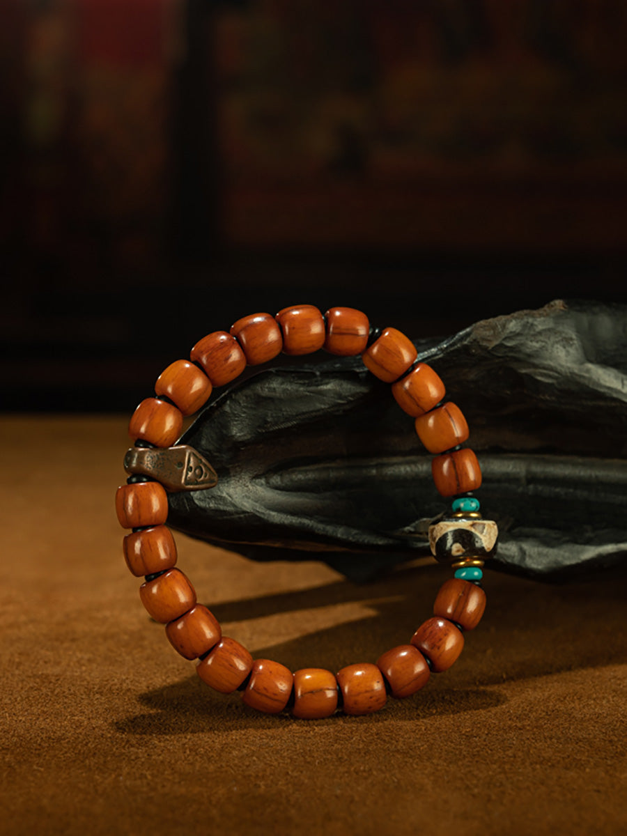 Qing Dynasty Style Tibetan High-Density Handcrafted Yak Bone Barrel Beads Bracelet
