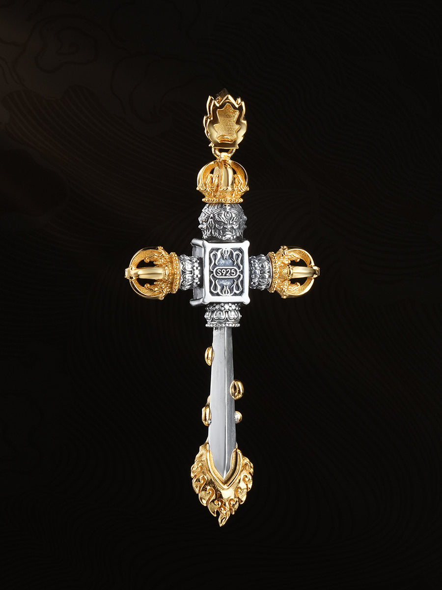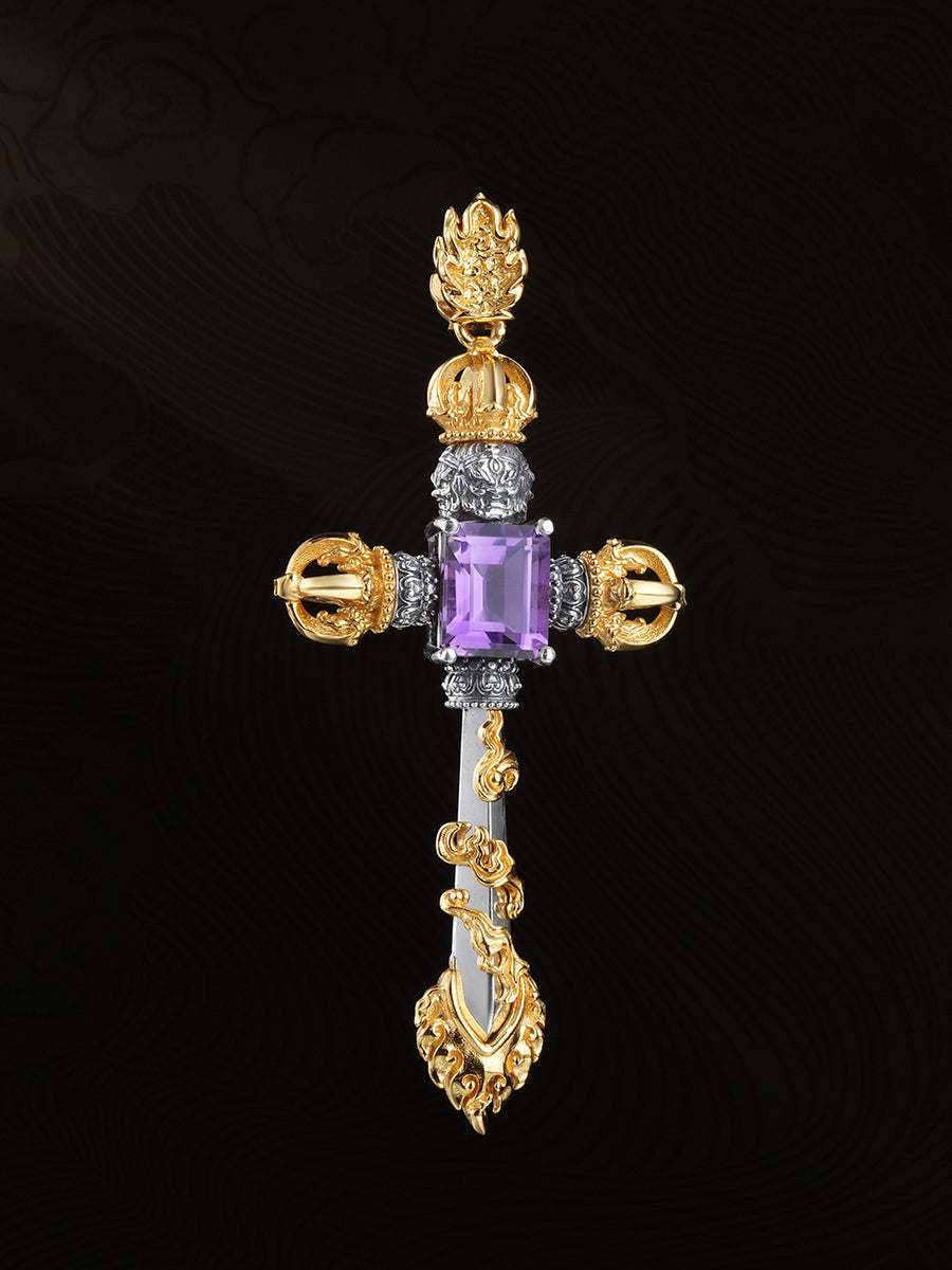 Inner Peace Insight Tibetan Amethyst Cross Vajra Protector Pendant