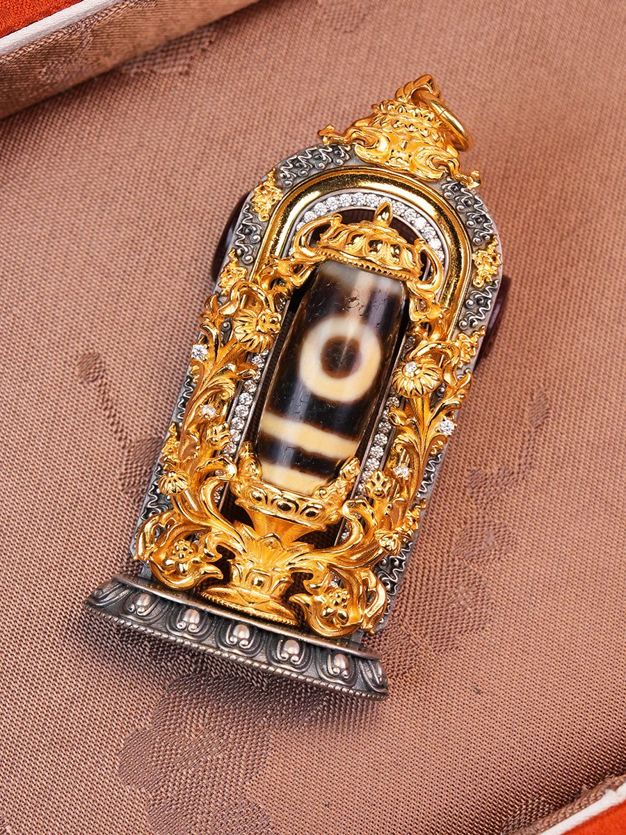 Empowering Support Single-Eyed Mountain Dzi Silver Pendant Great Lotus