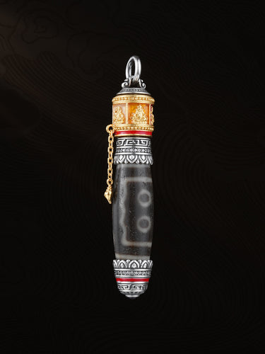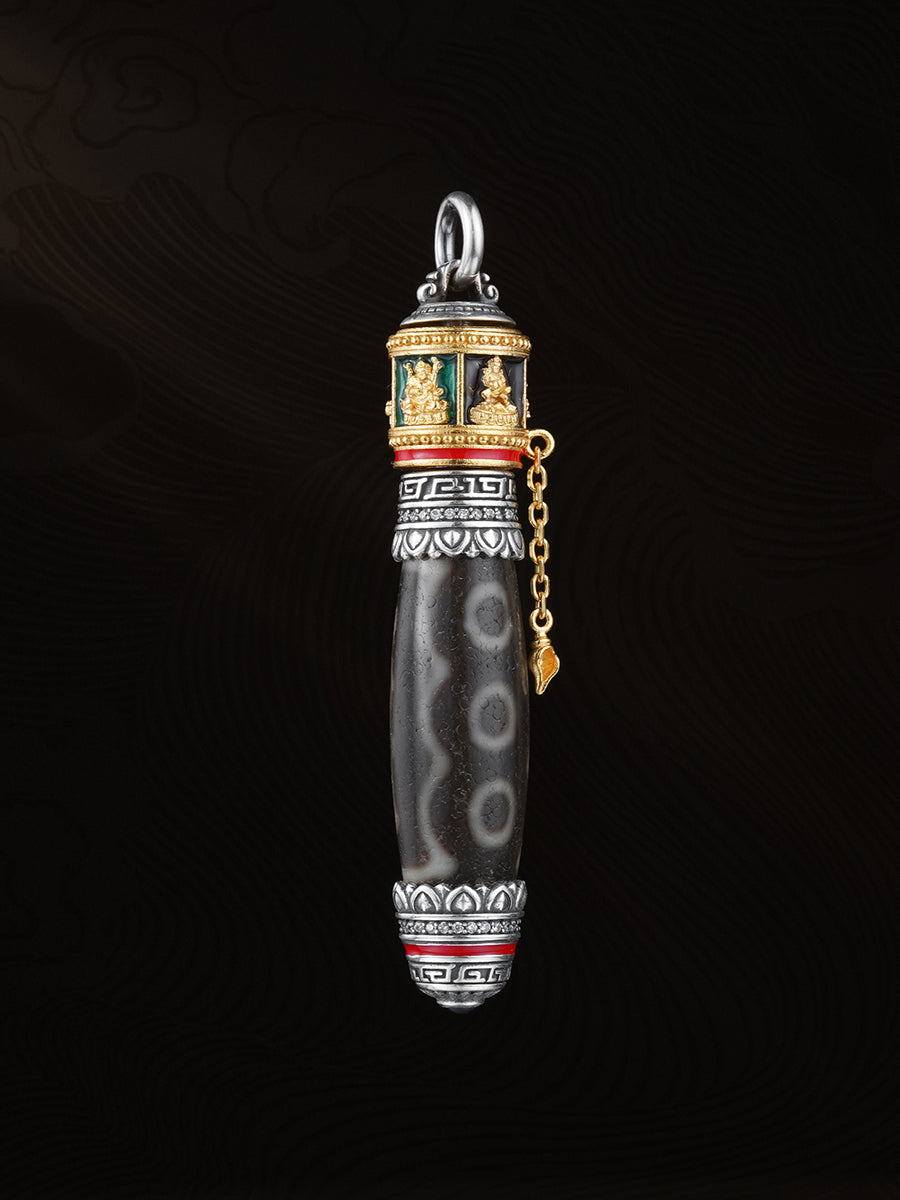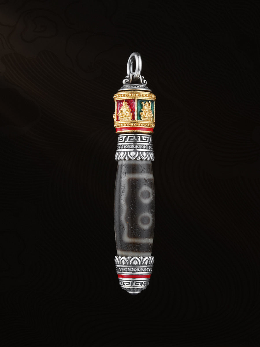Fortune Path Panda Three-Eyed Dzi Silver Pendant