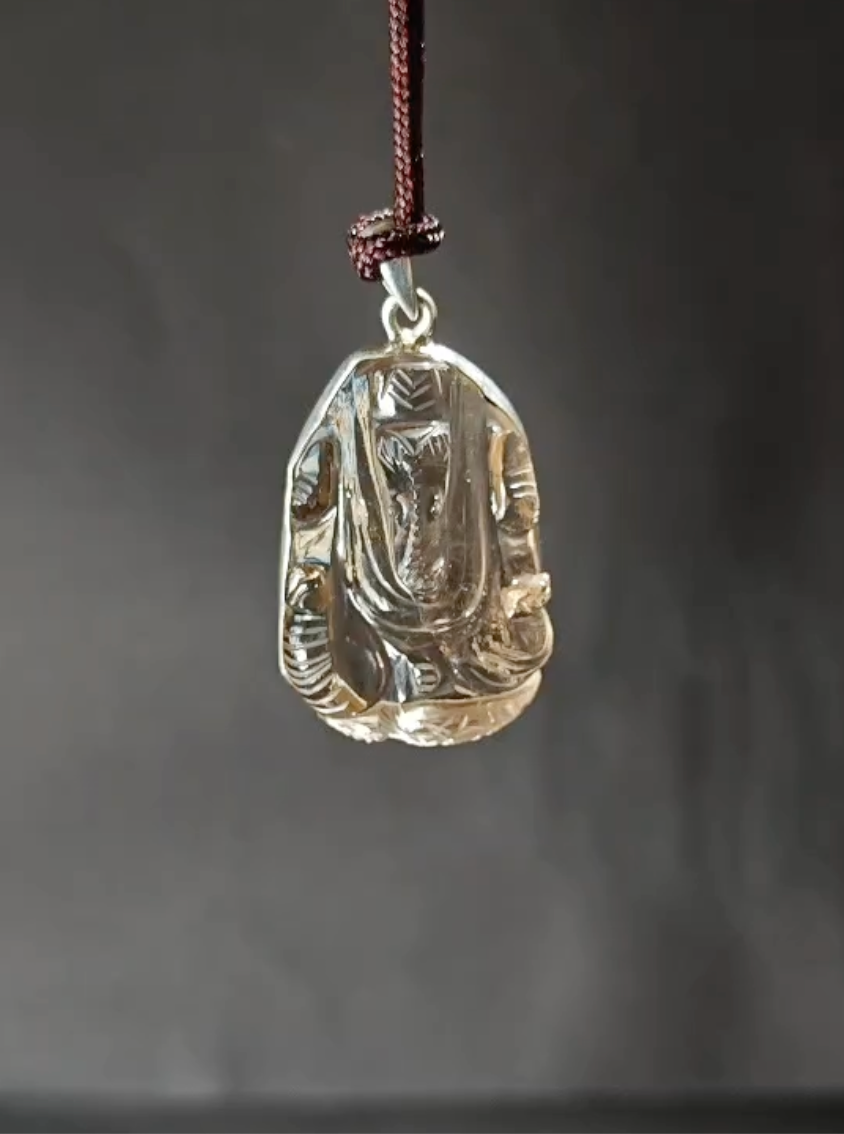 Himalayan Clear Quartz Ganesha Blessing Pendant
