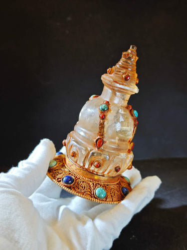 Himalayan Golden Clear Quartz Stupa Sculpture