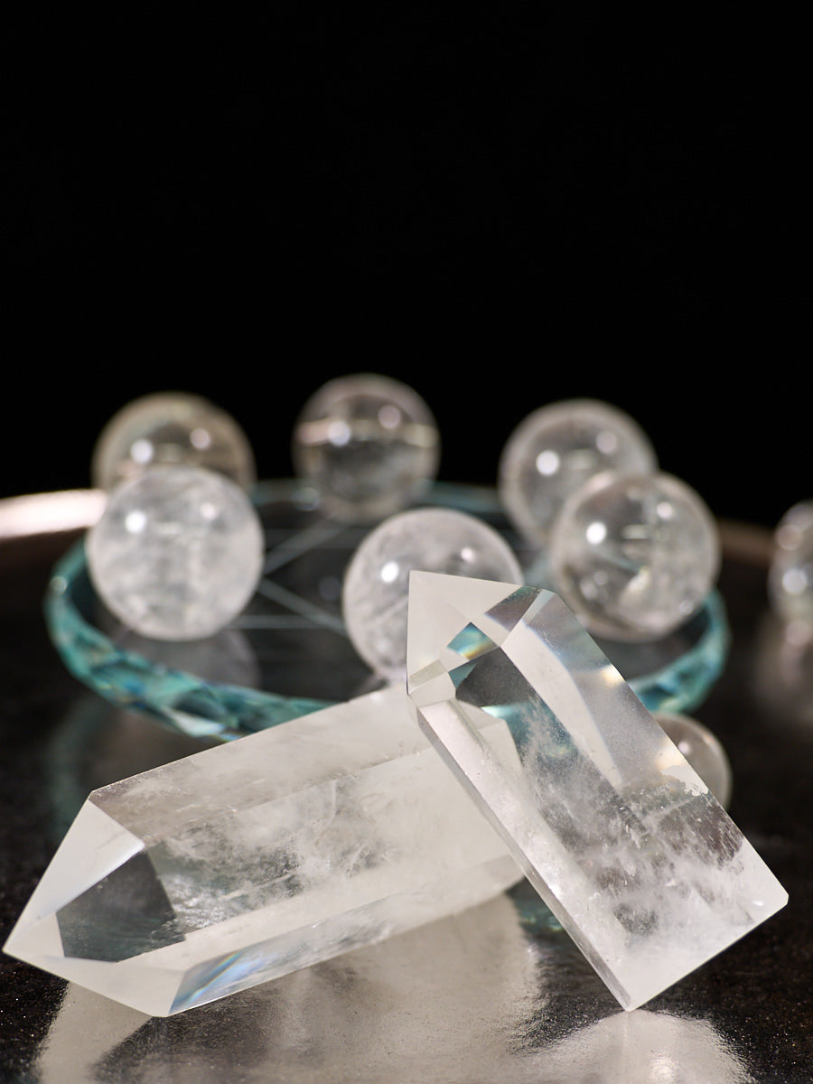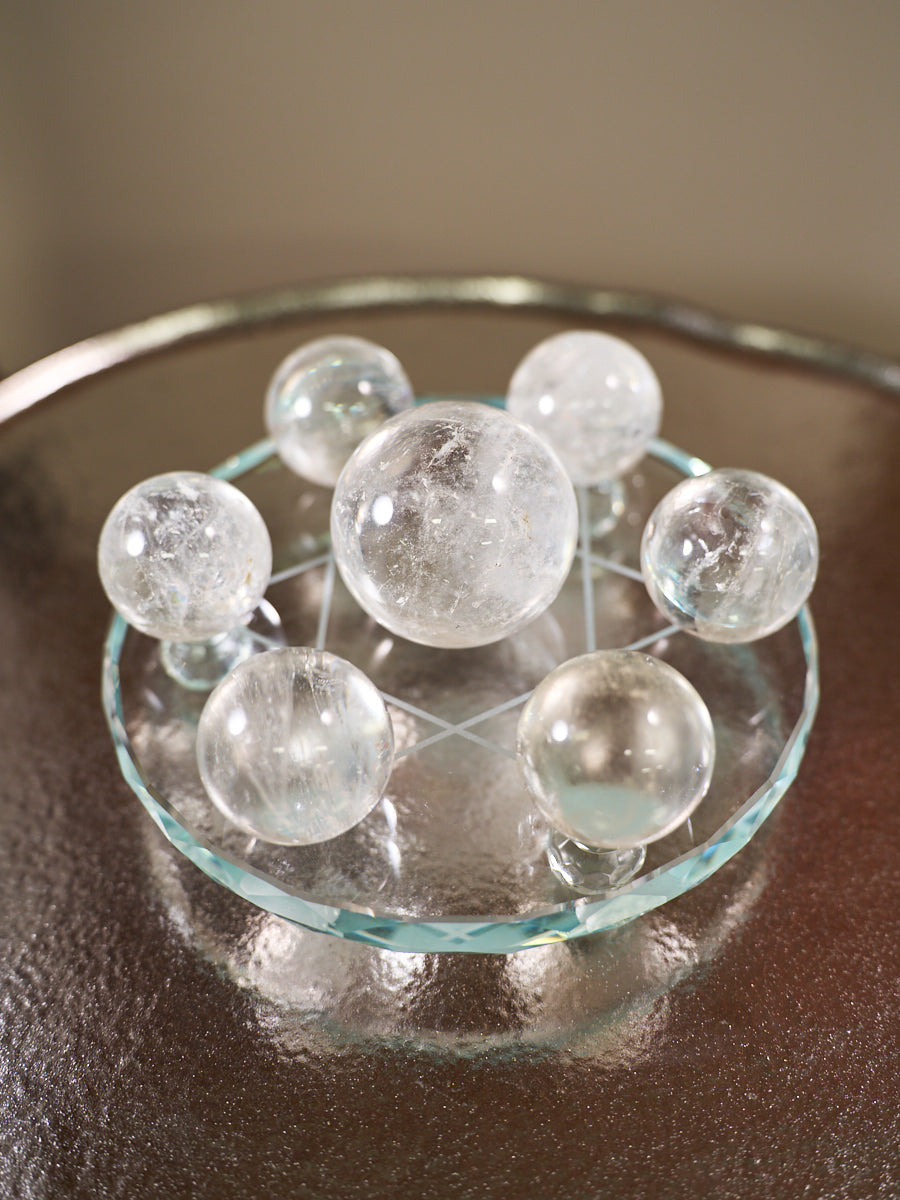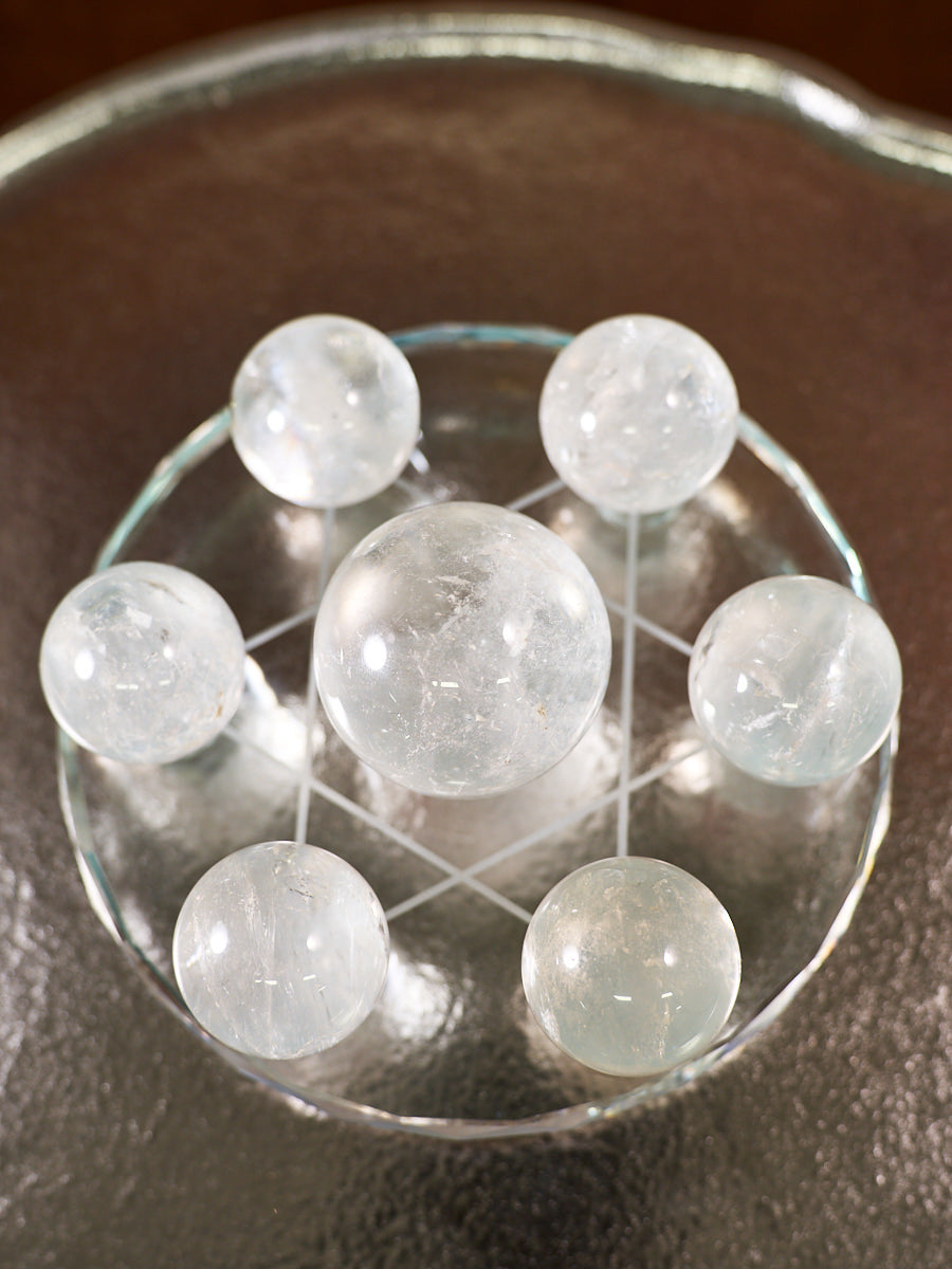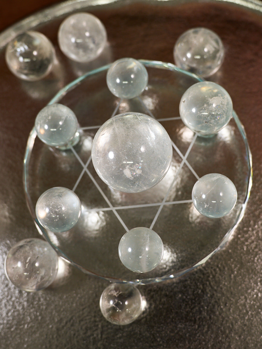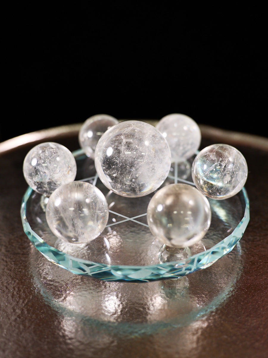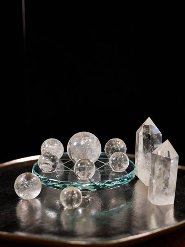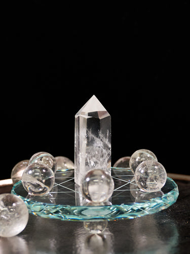 Material: Natural Clear Quartz (Crystal Spheres ×7, Crystal Tower ×1), Grid Plate