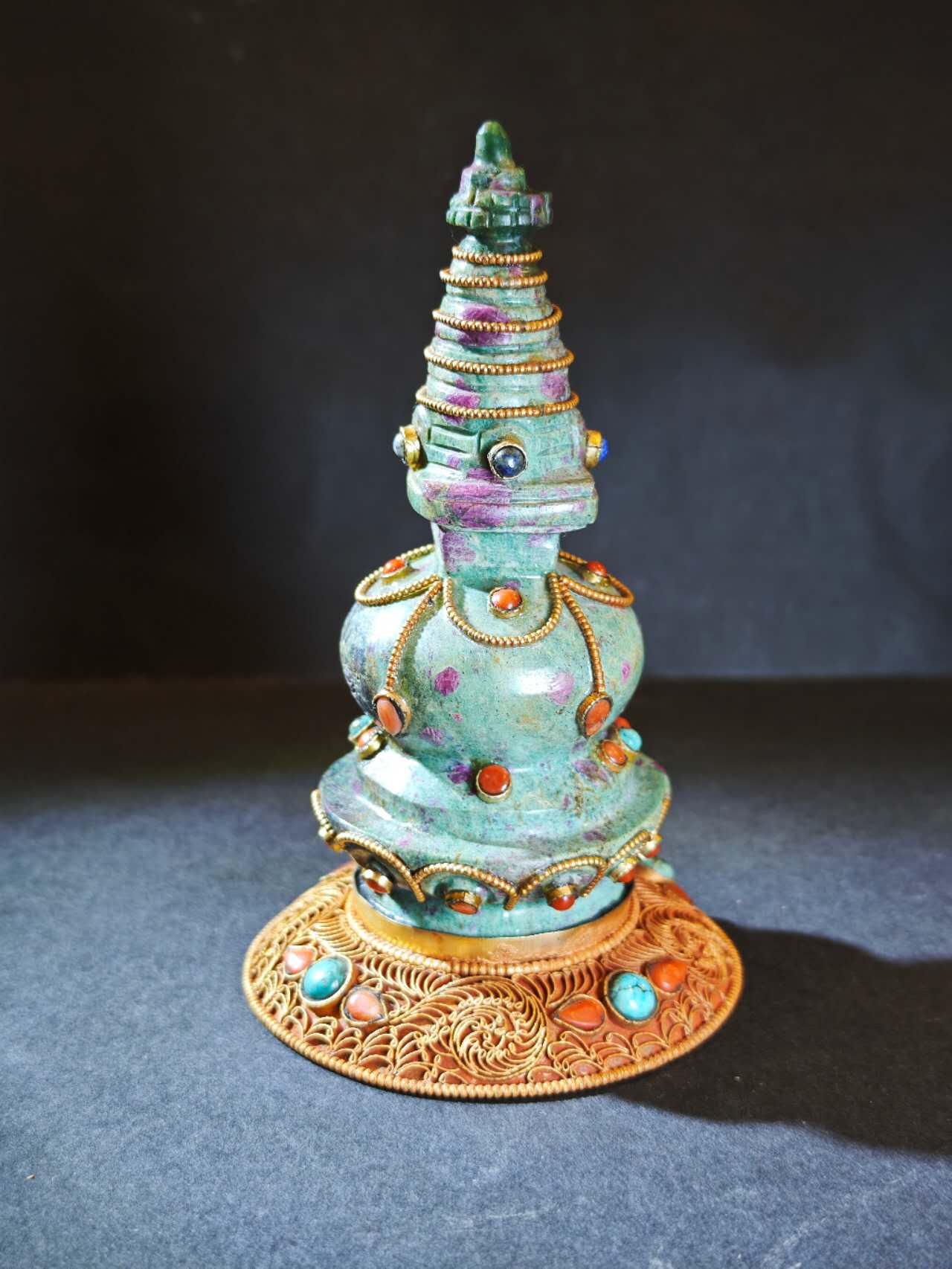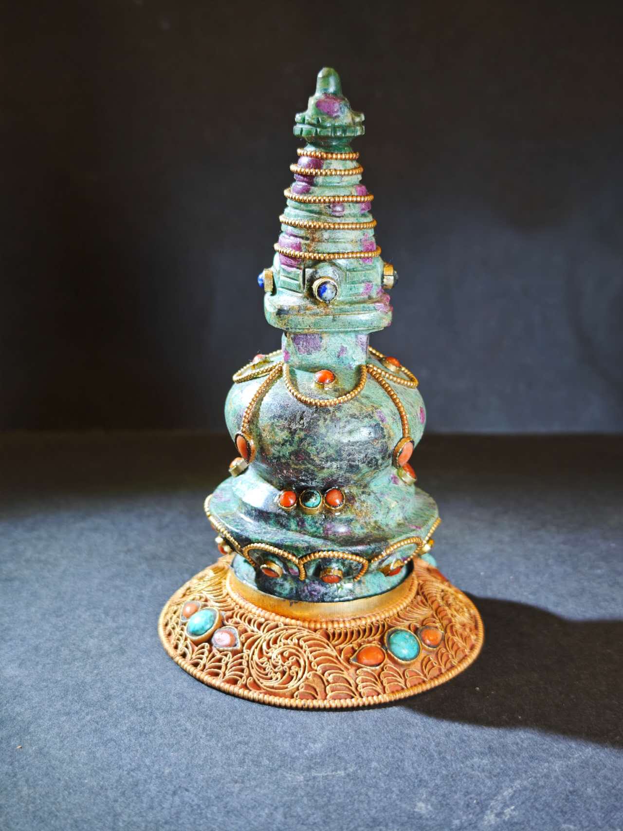 Ruby–Emerald Matrix Himalayan Stupa Sculpture