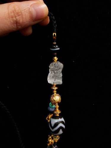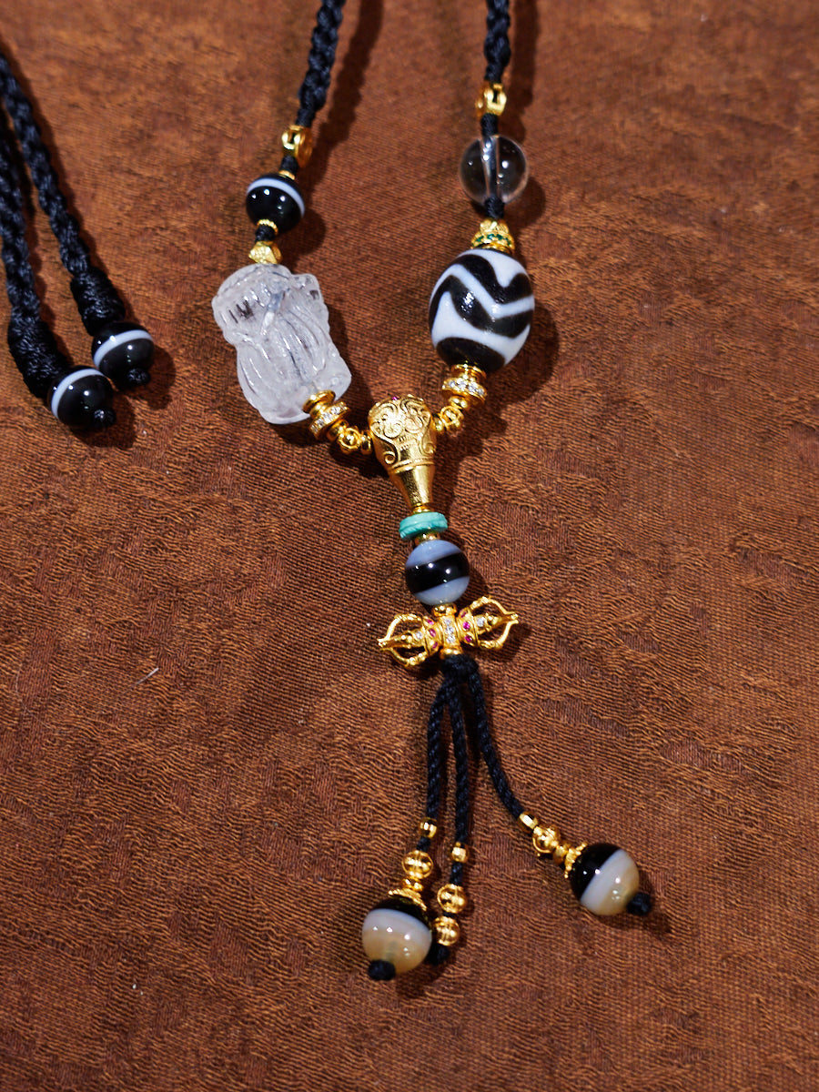 Eternal Flow Water-Wave Dzi & Crystal Agate Necklace