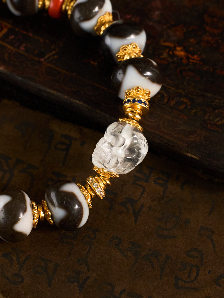 In Tibet, Dazi beads (གཟི།) are revered as "gems fallen from the heavens." Their origins are woven into ancient myths, believed to be sacred relics left by demigods or celestial talismans sent to alleviate earthly suffering. Each pristine, ancient Dazi is not merely a mineral formation but a vessel of millennia-old prayers and energy.