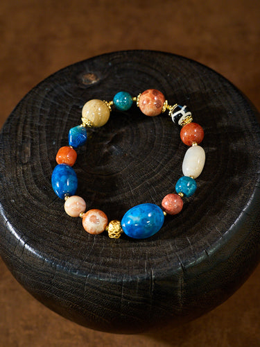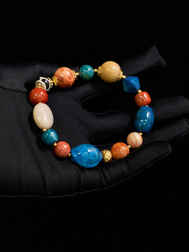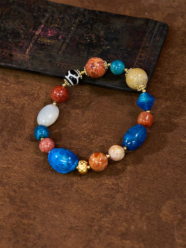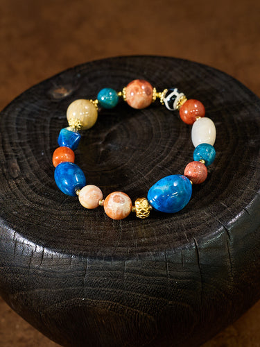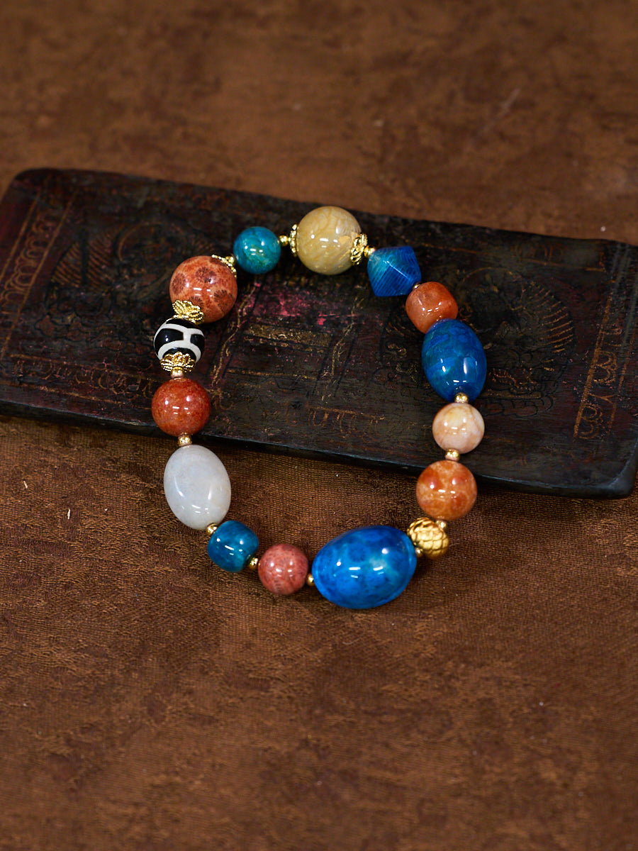 Agatized Coral & Turtle-Back Longevity Bead Protection Bracelet