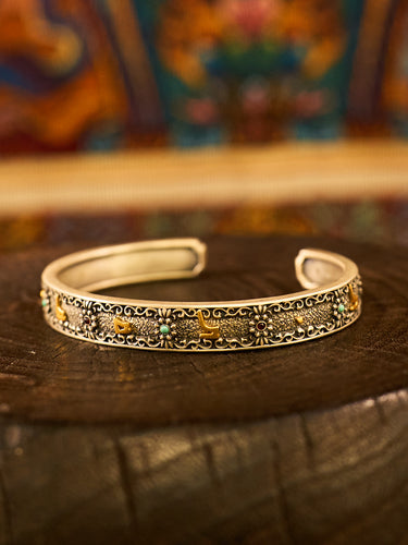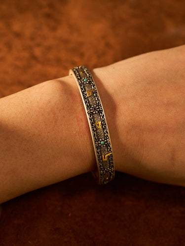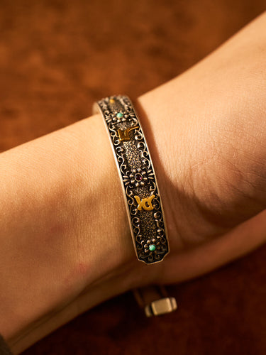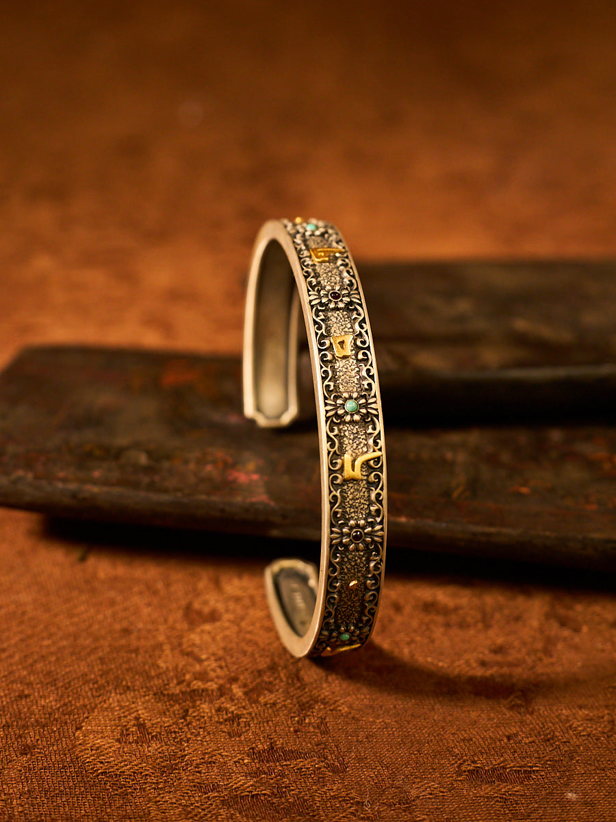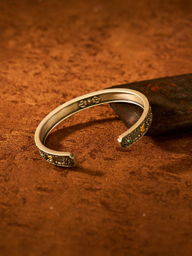 Om Mani Padme Hum Silver Plated Cuff Bracelet with Gold Handmade