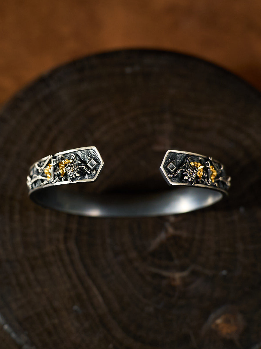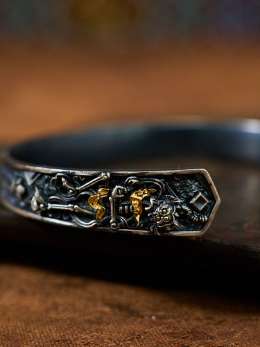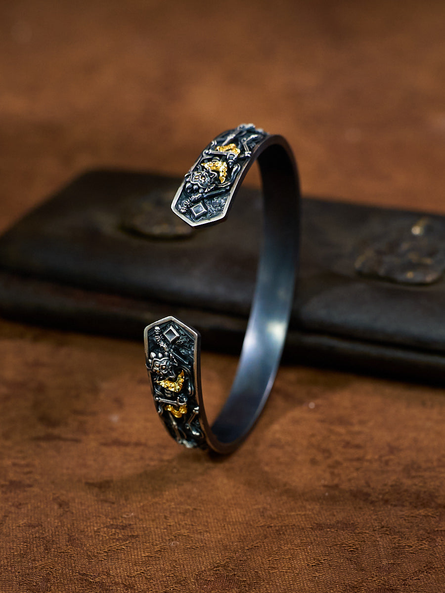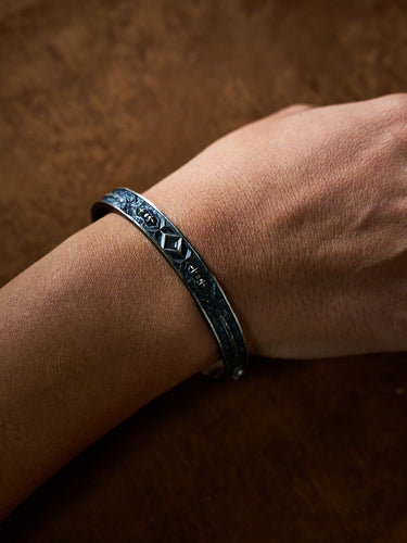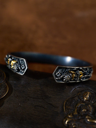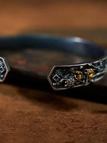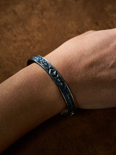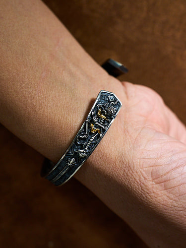 Spiritual Protection Cuff Bracelet Śmaśāna-Adhipati Silver Plated with Zircon