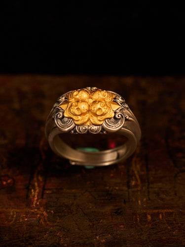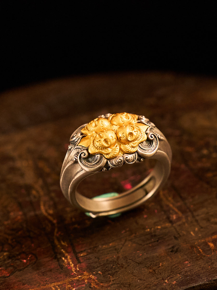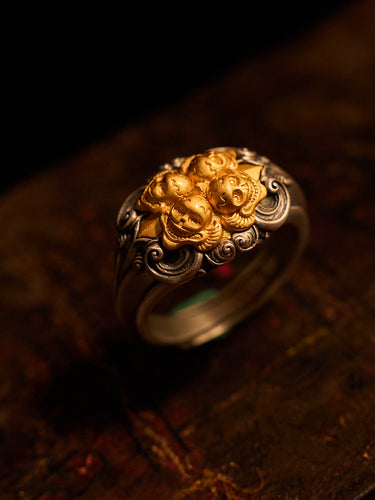 Spiritual Protection Śmaśāna-Adhipati Ring HandmadeSilver Plated with Gold