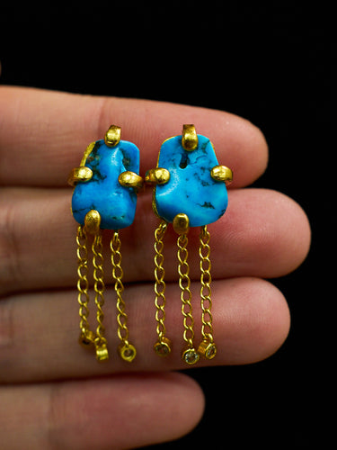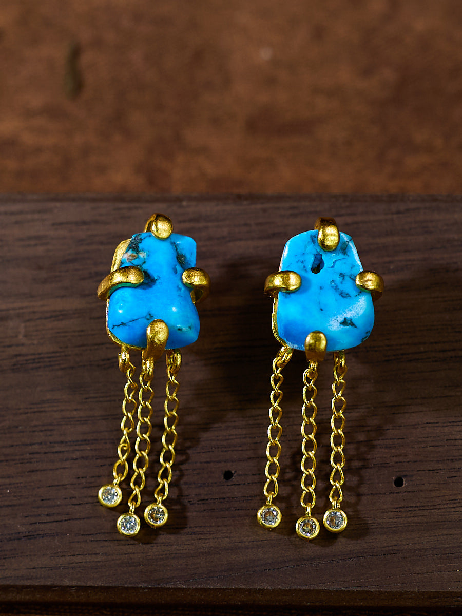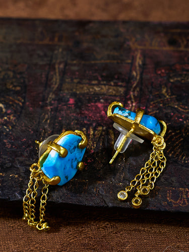 Golden Chains of the Himalayas Tibetan Style Turquoise Earrings