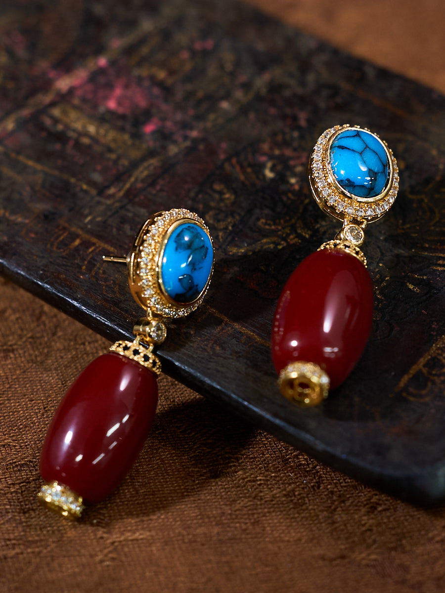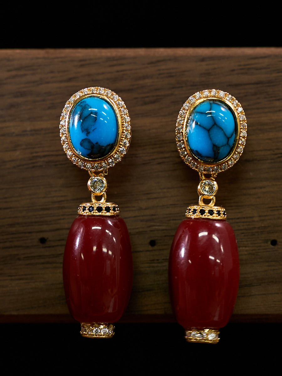 Golden Horizon Tibetan Style Turquoise Coral Stone Earrings