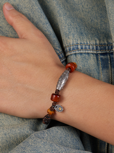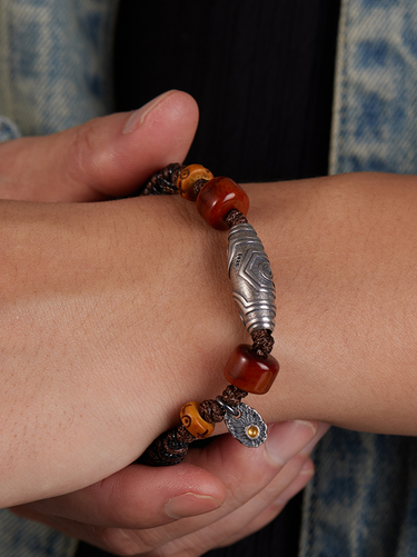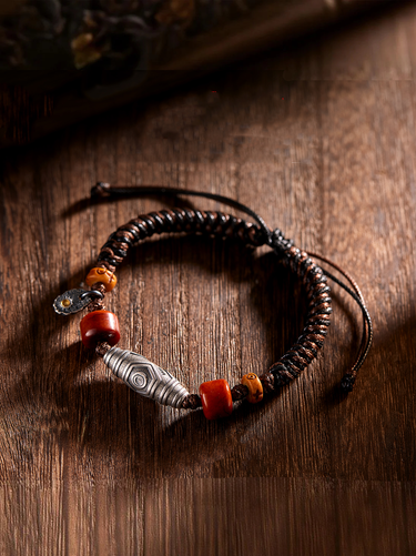 Handcrafted Woven Wax Cord Three-Eye Dzi Bead Bracelet