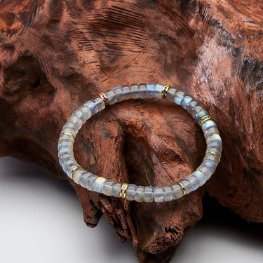The Kailash Energy Pure Clarity Labradorite Bracelet is a symbol of spiritual purity, transformation, and inner wisdom. Featuring exquisite hand-polished labradorite beads, this bracelet radiates a mesmerizing blue-gray sheen, known for its ability to enhance intuition and clarity of thought. The addition of golden accent rings adds a touch of elegance, making it a perfect balance between sophisticated design and high-vibrational energy.