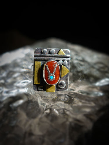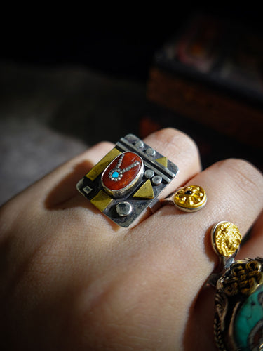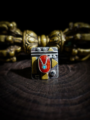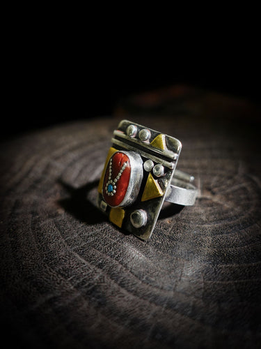 Empower Vitality Courage Ring | Red Coral & Turquoise Gold-Plated Sterling Silver