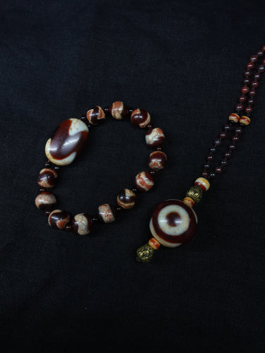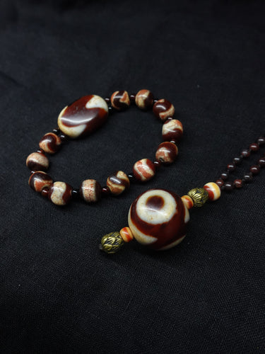 【Unique Item】 Aka(Tulku Lama) Dzi bead Pendant