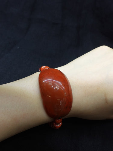 【Unique Item】 "Crimson Blaze of Fortune" Big Nanhong agate Bracelet
