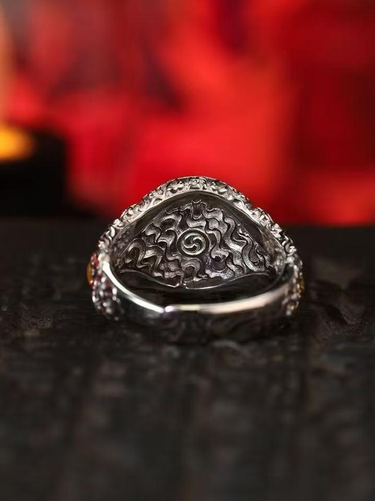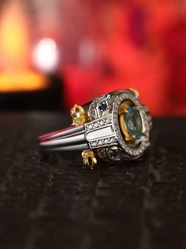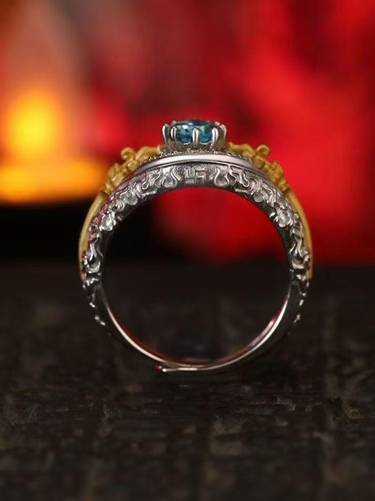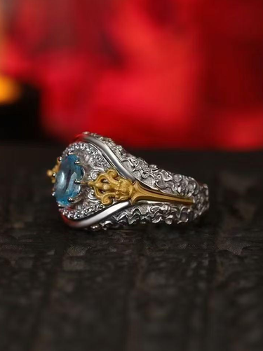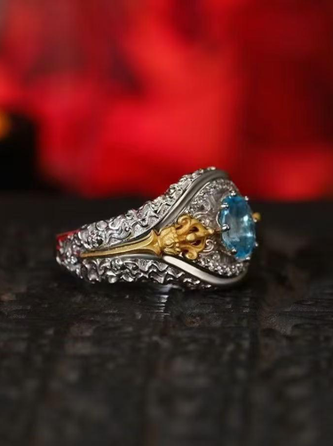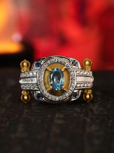 Vajra Ritual Ring: Padmasambhava's Symbol for Overcoming Obstacles & Divine Protection - Sterling Silver with Blue Topaz