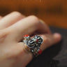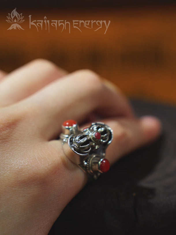 Guardian of Strength Sterling Silver Ring with Red Coral – Himalayan Symbol of Protection