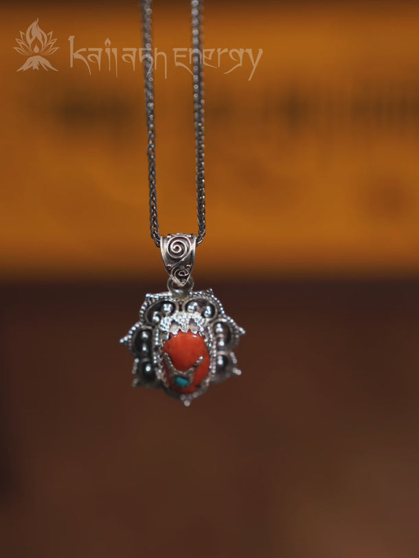 Heart of Harmony Pendant with Red Coral and Turquoise – A Himalayan Symbol of Love and Compassion